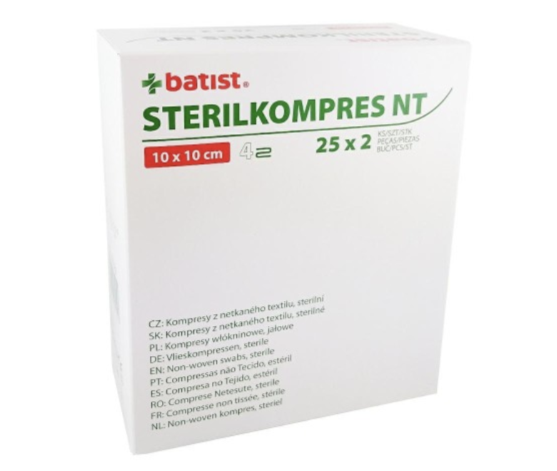 Kompresy BATIST STERILKOMPRES NT 10x10cm włókninowe sterylne 4-w (25 x 2szt.) PUDEŁKO