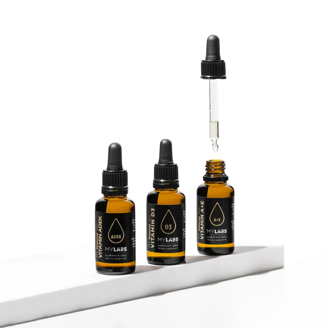 MY Natural VITAMIN A+E to wysokiej jakości suplement diety zawierający naturalne witaminy A i E rozpuszczone w oleju MCT, co zapewnia ich optymalne wchłanianie i biodostępność. Produkt odpowiedni dla wegetarian i wegan.