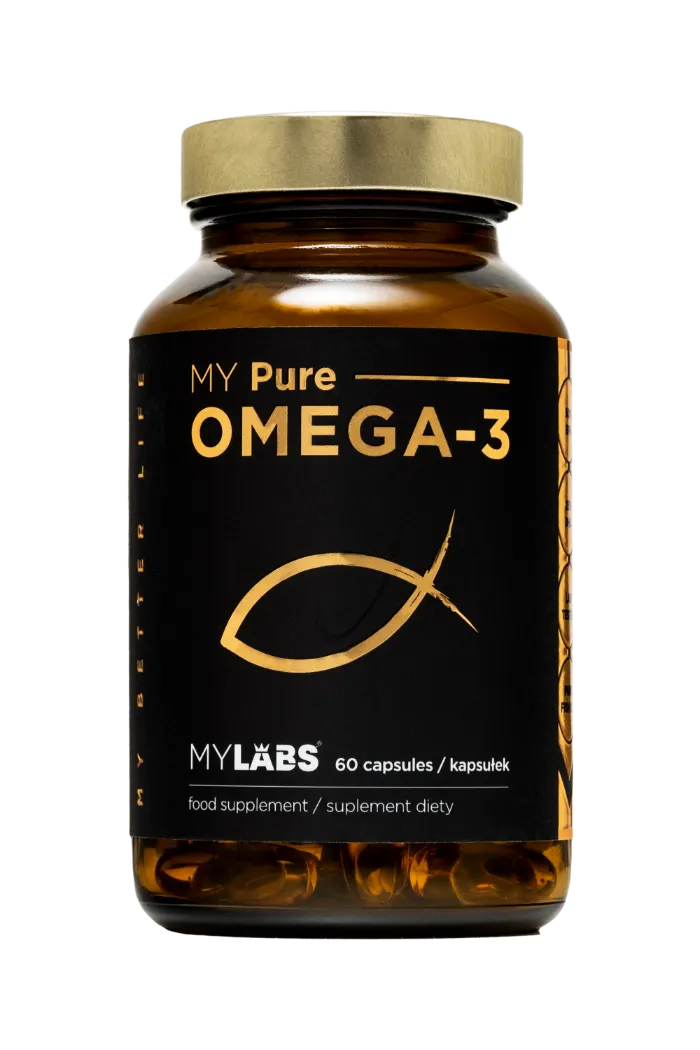 MY Pure OMEGA-3 to wysokiej jakości suplement diety dostarczający niezbędnych kwasów tłuszczowych omega-3, które wspierają zdrowie serca, mózgu i wzroku. Każda kapsułka zawiera aż 1000 mg oleju rybiego, w tym 50% EPA i 25% DHA, zapewniając optymalne korzyści zdrowotne.