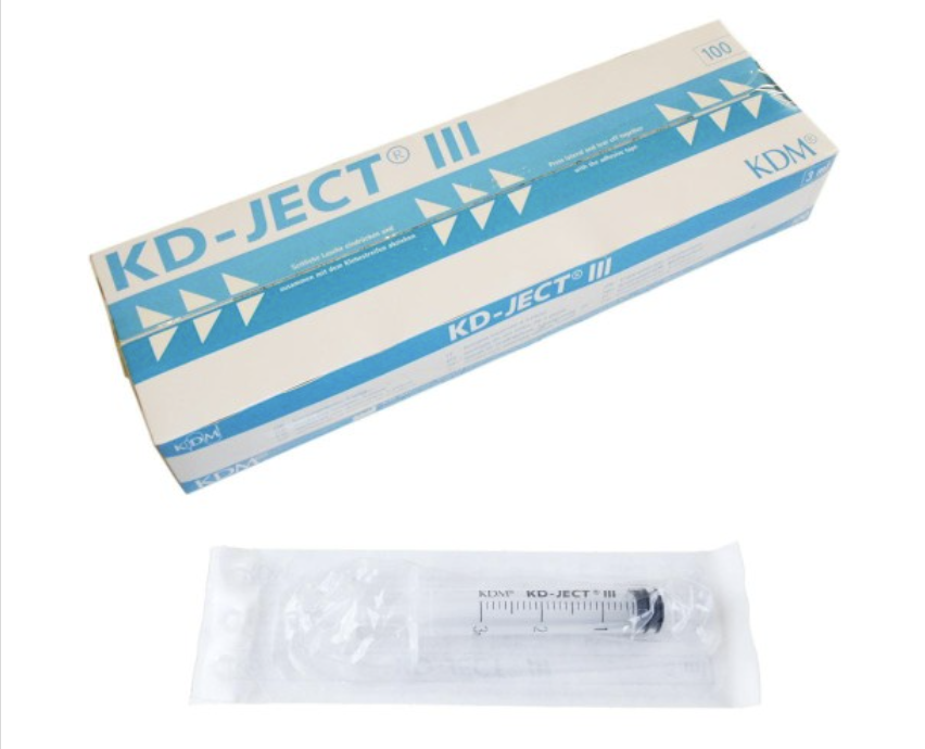 Trzy częściowa strzykawka do infuzji podskórnych, domięśniowych i dożylnych. Wyposażona w gumowany (nie zawierający lateksu) tłok i ogranicznik na końcu cylindra -zapobiegający wypadaniu tłoka. Końcówka typu Luer Lock (LL) zabezpiecza przed przypadkowym zsunięciem się igły. Cylinder wykonany z przezroczystego tworzywa sztucznego z wyraźną podziałką umożliwia pełną wizualną kontrolę zawartości preparatu. Wszystkie strzykawki pakowane sterylnie (sterylizacja tlenkiem etylenu) w blistry foliwo-papierowe. KD-JECT III LUER-LOCK nie zawierają lateksy i ftalanów.
