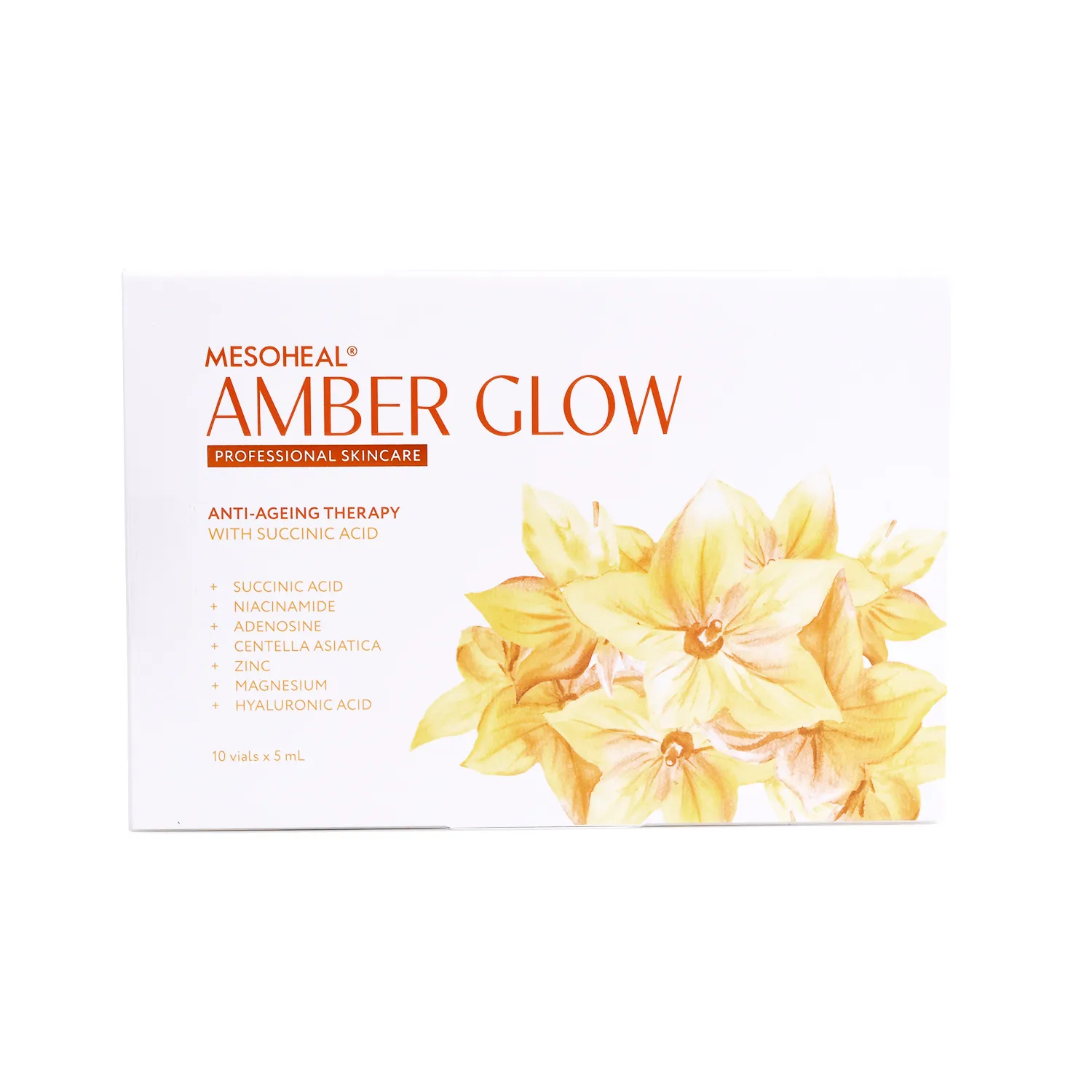 Formuła MESOHEAL Amber Glow zawiera naukowo potwierdzone składniki aktywne, takie jak kwas bursztynowy, niacynamid, adenozyna oraz ekstrakty z Centella Asiatica. Działają one synergicznie, by odświeżyć skórę od wewnątrz, przywracając jej młodzieńczy wygląd oraz zdrowie.